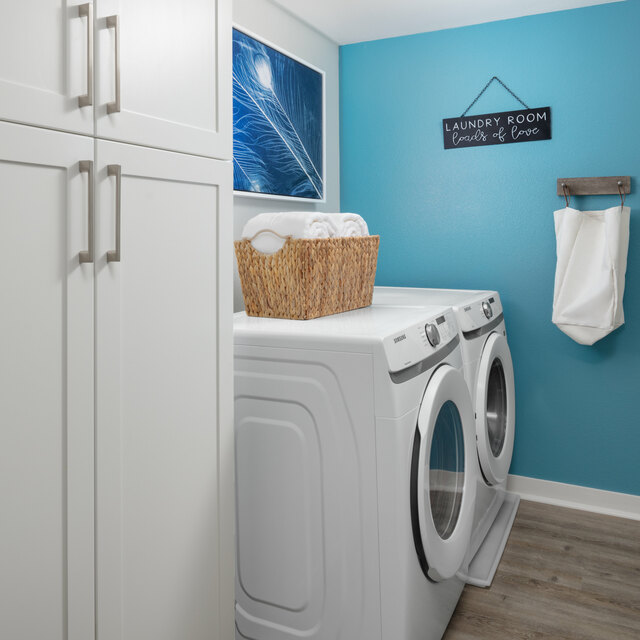 - Laundry day is easy and convenient with in-home front-loading washers and dryers.